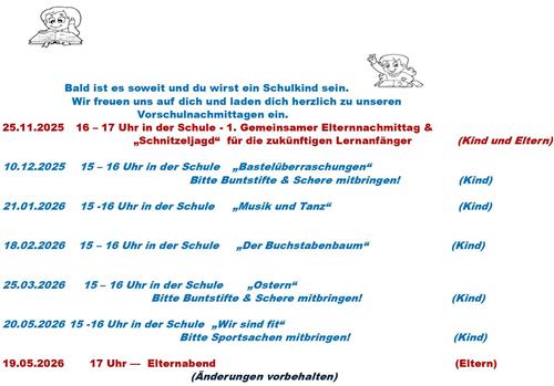 Termine Vorschule - Schuljahr 26/27